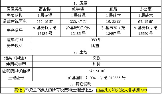 受瀘縣喻寺鎮(zhèn)人民政府委托,我公司將于2015年1月28日上午10時在瀘縣公共資源交易中心拍賣大廳公開拍賣瀘縣喻寺鎮(zhèn)廣東街(原喻寺鎮(zhèn)中心幼兒園)的房產(chǎn):