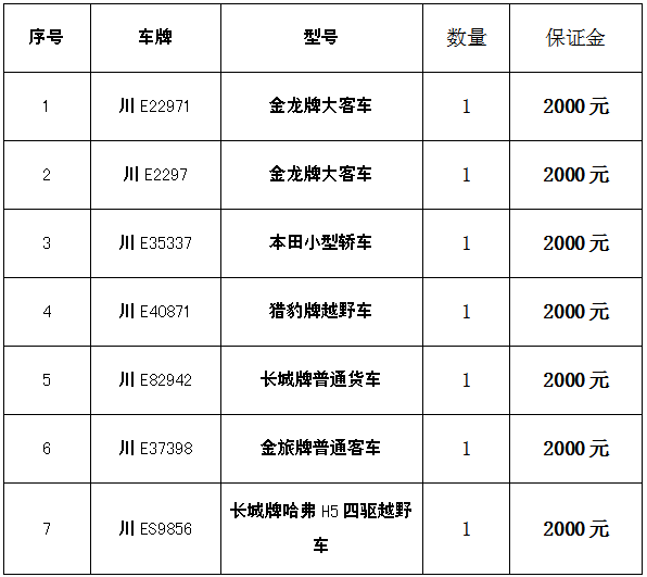 四、凡有意競(jìng)買者請(qǐng)于2019年1月21日17:00以前將保證金匯入我公司指定賬戶(保證金以到賬為準(zhǔn)),并持匯款依據(jù)及有效證件到我公司辦理競(jìng)買手續(xù)和開通網(wǎng)絡(luò)競(jìng)買權(quán)限。(戶名:瀘州市四方拍賣有限公司,賬號(hào):51001637708051501502 開戶行:建行瀘州世紀(jì)城支行)。